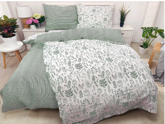 - Krepové povlečení HERBÁŘ ZELENÝ 70x90 /140x220 laděné do odstínů zelené a bílé barvy.